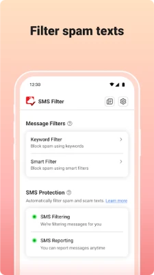 📱 SMS Filter: Set Trend Micro ScamCheck as your default SMS app to automatically block spam and scam texts. Customize blocking for specific keywords, unknown numbers, and messages containing links.
